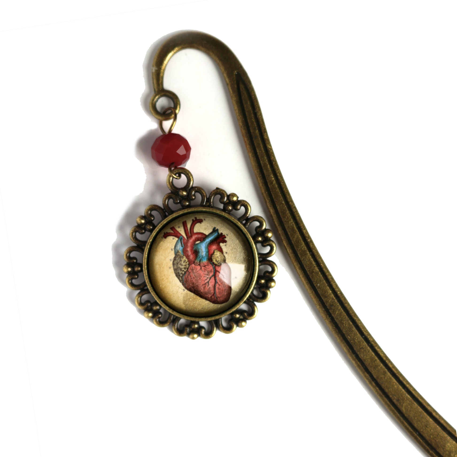 Bokmerke i bronse finish med anheng "Anatomical heart".
