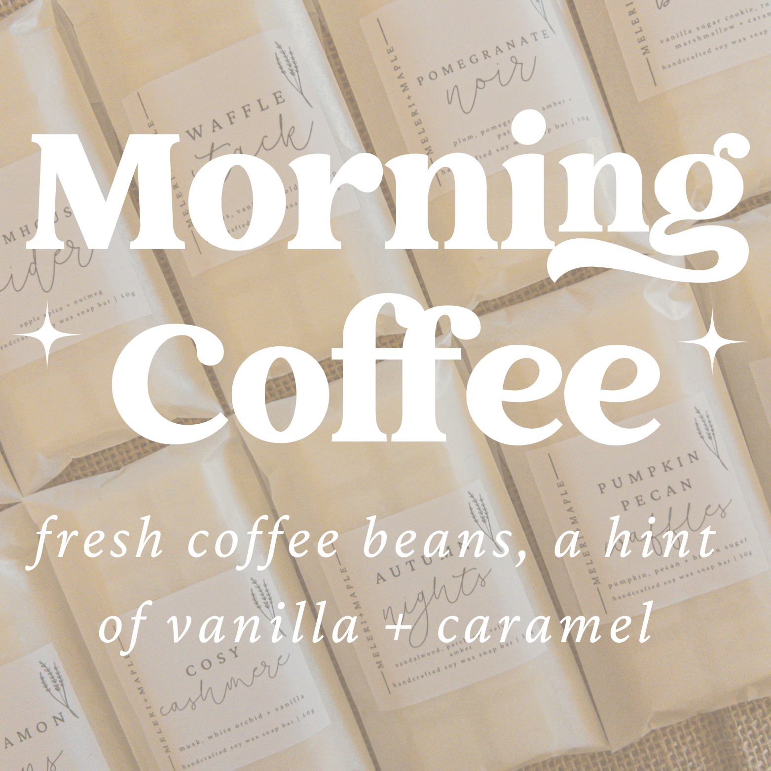 Morning Coffee snap bar fra Meleri and Maple Co gir en rik og koselig kaffeduft som passer perfekt når du vil skape en lun atmosfære hjemme. Hver snap bar håndlages i West Midlands av soyavoks og tørkede botaniske elementer.